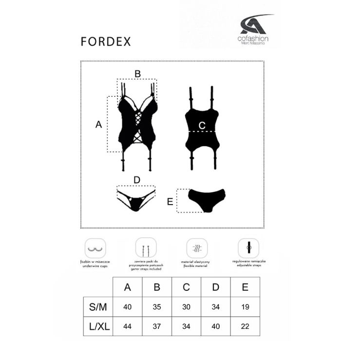 Het gepresenteerde korset is een uniek ondergoedelement dat speciaal is ontworpen om de vrouwelijke voordelen prachtig te benadrukken. Dit korset is perfect voor compromisloze, moedige vrouwen die zich sexy willen voelen en er aantrekkelijk uit willen zien. De set bestaat uit twee delen: een slipje en een korset met een decoratief gaas met stippen en strikbanden met jarretellessluiting. Het korset is gemaakt van materialen van de hoogste kwaliteit en is met veel aandacht voor afwerking vervaardigd. Hierdoor ziet het er niet alleen geweldig uit, maar biedt het ook maximaal comfort. Het materiaal voelt aangenaam aan op de huid en is tegelijkertijd zeer duurzaam. De Fordex Kirklees set is ontworpen voor vrouwen die waarde hechten aan hoogwaardige niet-standaardproducten. Het korset heeft een delicaat ontwerp en voelt aangenaam aan op de huid. De zorgvuldig geselecteerde snit van het korset zorgt ervoor dat het figuur slanker lijkt en de vorm van de borst, taille en billen benadrukt. De decoratieve inzetstukken, zoals de stippen en het lieflijke strikje op het slipje, voegen een vleugje finesse toe aan de set. Deze set is perfect voor speciale avonden met je geliefde, waarin je je vrouwelijkheid wilt vieren en je partner wilt verrassen. Kortom, het Fordex Kirklees korset is een uniek en hoogwaardig ondergoedstuk dat zowel comfort als stijl biedt aan de moderne, zelfverzekerde vrouw.