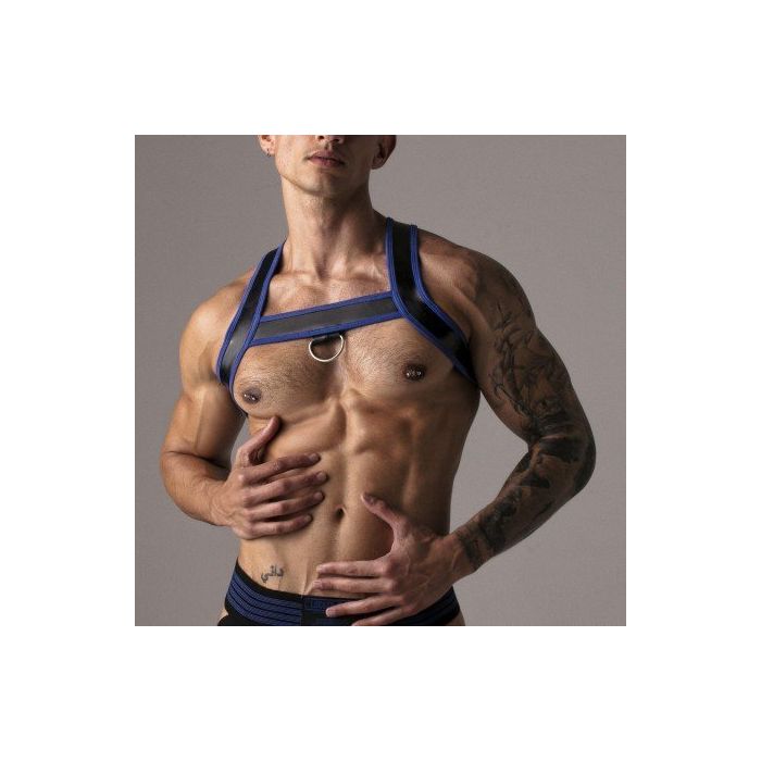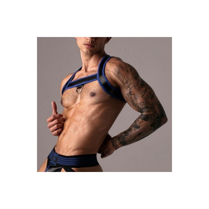 In het Harder Harness - Blauw van Locker Gear komt jouw gespierde torso nog geiler uit. Het harnas is gemaakt van kunsteleren banden die nauwsluitend rond de schouders gedragen worden.