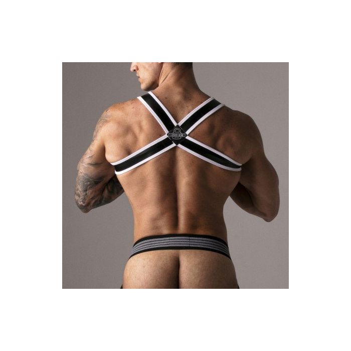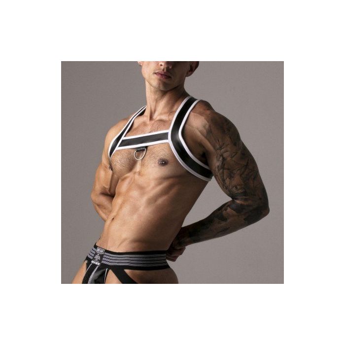 Het Locker Gear Harder Harness - Wit is een leder look harnas die jouw schouders nog breder doet lijken. Het harnas bestaat uit brede banden die nauwsluitend om de schouders zitten. Aan de voorkant is een metalen ring bevestigd.