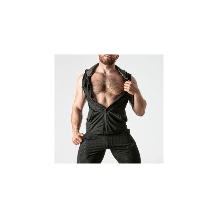 Deze mouwloze hoody is gemaakt van de fijnste ademende mesh-stof, waardoor het de perfecte keuze is voor sportieve activiteiten of gewoon voor een casual look. De hoody is ontworpen met comfort en stijl in gedachten, en biedt een optimale luchtcirculatie om je koel en droog te houden, zelfs tijdens intensieve trainingen. De volledige ritssluiting aan de voorkant maakt het gemakkelijk om de hoody aan en uit te trekken, en biedt ook de mogelijkheid om de ventilatie aan te passen aan je persoonlijke voorkeur. De pinhole zijbanden in een contrasterende kleur voegen een vleugje stijl toe aan het ontwerp en zorgen voor extra ademend vermogen. Een opvallend kenmerk van deze hoody is het gedrukte logo op de borst, waardoor je een sportieve en trendy uitstraling krijgt. Het logo is subtiel maar toch opvallend genoeg om je outfit net dat beetje extra te geven. Of je nu gaat joggen, naar de sportschool gaat of gewoon een ontspannen dagje thuis doorbrengt, deze mouwloze hoody is de perfecte keuze voor comfort en stijl. Met zijn hoogwaardige materialen en doordachte details is deze hoody een must-have voor elke sportieve garderobe.