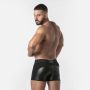 De trunk is verder uitgerust met D-ringen aan de binnenkant van de tailleband, waarmee de "RUB IT HARNESS" kan worden bevestigd. Dit biedt de mogelijkheid om de outfit aan te passen en te personaliseren, afhankelijk van de gelegenheid. Bovendien is er een functionele rits aan de achterkant, die niet alleen zorgt voor gemakkelijke toegang, maar ook bijdraagt aan de algehele functionaliteit van het kledingstuk. Deze trunk is dus niet alleen een mode-item, maar ook een praktisch en veelzijdig stuk dat perfect aansluit bij de behoeften van de moderne man.