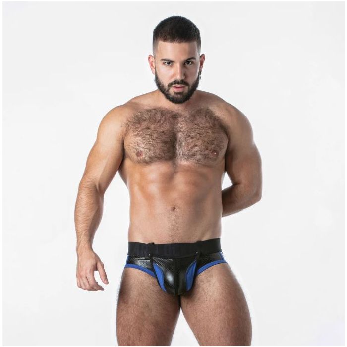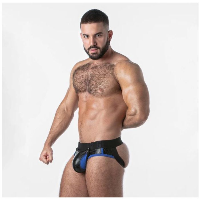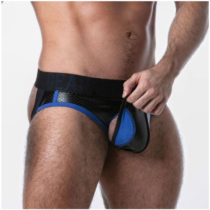 De Locker Gear Punch Hole Jock Brief - Blauw van het populaire gay merk Locker Gear is een opvallend en gedurfd kledingstuk dat speciaal is ontworpen voor de moderne man die zijn zelfvertrouwen en sensualiteit wil benadrukken. Gemaakt van de fijnste perforated leatherette, biedt deze jock brief niet alleen een luxe uitstraling, maar ook een ademend vermogen dat zorgt voor comfort tijdens het dragen. De vierkante snit accentueert de natuurlijke vormen van het lichaam, waardoor een flatterend silhouet ontstaat dat perfect is voor zowel privé- als openbare gelegenheden.