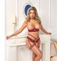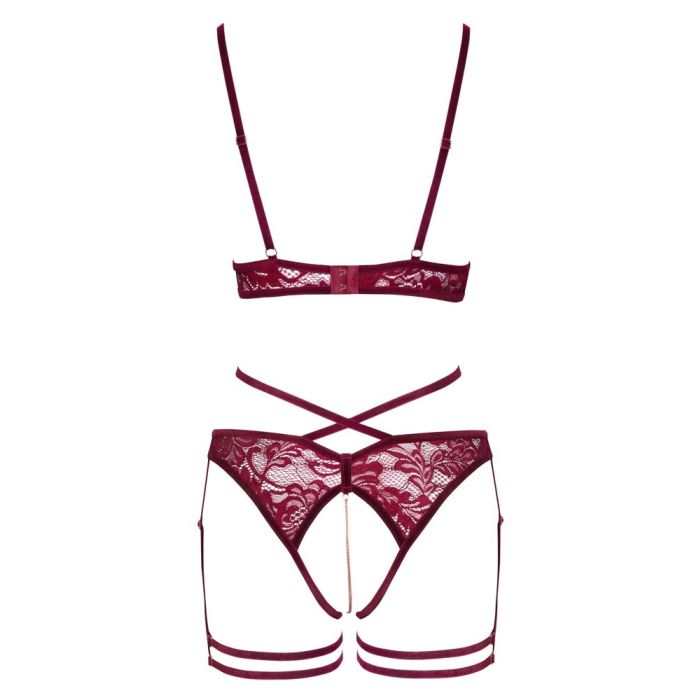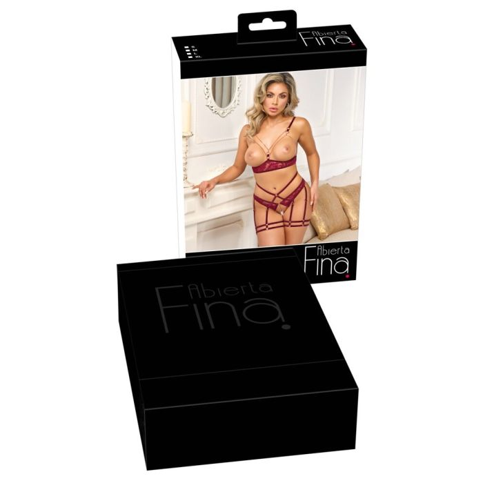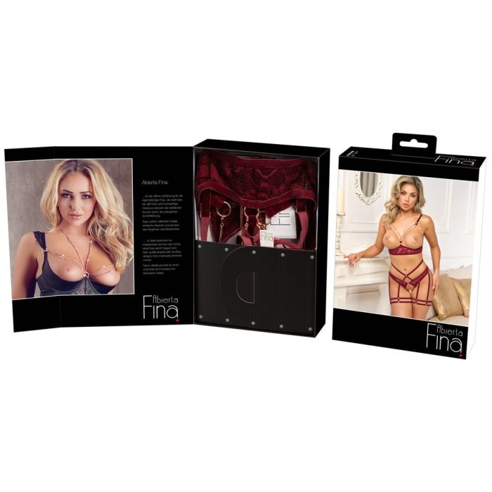 Abierta Fina Borstvrije Jarretel Lingerie Set - Rood