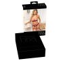 Maak kennis met de Abierta Fina set, een waar meesterwerk van erotische elegantie dat je zelfvertrouwen een flinke boost zal geven. Deze spannende set bestaat uit een borstvrije bh en een jarretelslipje, perfect ontworpen om je mooiste rondingen te accentueren. Het gebruik van fijn donkerrood kant geeft een luxe uitstraling, terwijl de fluwelen linten en roségoudkleurige accessoires een vleugje verfijning toevoegen. Dit is niet zomaar lingerie; het is een statement dat je sensualiteit viert en je uitnodigt om jezelf te omarmen. Comfort is essentieel, en deze set biedt dat in overvloed. De zachte en elastische materialen zorgen ervoor dat je je de hele dag door prettig voelt, of je nu een romantische avond plant of gewoon jezelf wilt verwennen. De decoratieve kettingen die de blootliggende borsten omlijsten, zijn niet alleen een lust voor het oog, maar stimuleren ook elke beweging die je maakt. Met drie afneembare kettingen in het volledig open kruis, biedt deze set een speelse en uitdagende twist die je partner zeker zal verrassen. De bh-bandjes en de haaksluiting aan de achterkant zijn volledig verstelbaar, zodat je de perfecte pasvorm kunt creëren die bij jouw lichaam past. Het jarretelslipje heeft een taillehoge fluwelen band die je figuur prachtig accentueert, terwijl de fluwelen bretels met dubbele dijbeenbanden ook naar wens verstelbaar zijn. Dit zorgt niet alleen voor een geweldige look, maar ook voor een gevoel van luxe en verfijning. Met de Abierta Fina set ben je verzekerd van een onweerstaanbare uitstraling die elke gelegenheid speciaal maakt.
