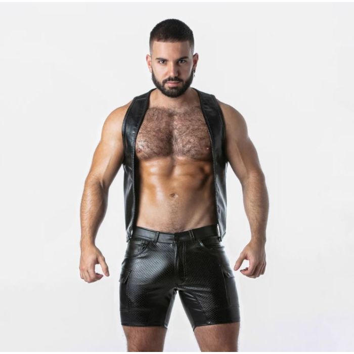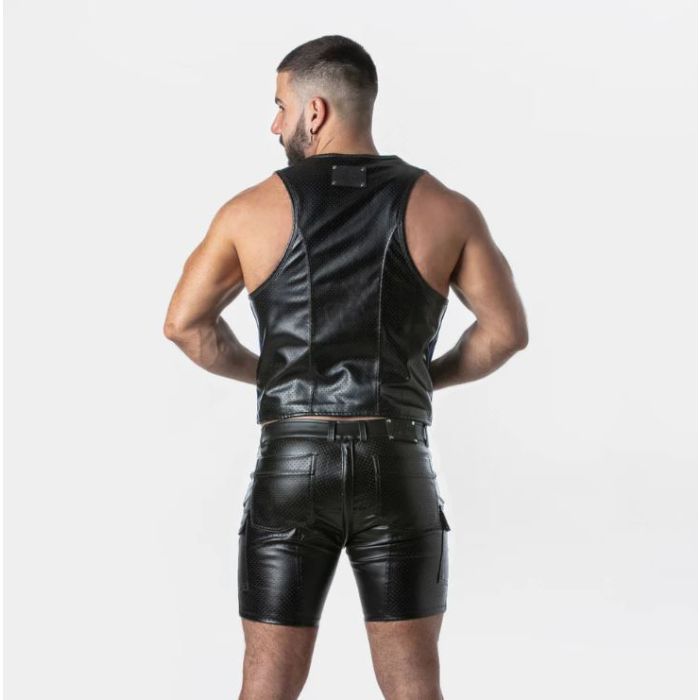 Dit bar vest, vervaardigd uit de fijnste geperforeerde kunstleer, is een opvallend kledingstuk dat perfect aansluit bij de stijl en esthetiek van de moderne man. Het gebruik van hoogwaardig materiaal zorgt niet alleen voor een luxe uitstraling, maar ook voor een ademend vermogen dat het dragen van het vest comfortabel maakt, zelfs tijdens lange avonden uit. De perforaties in het leer zorgen voor een speelse, maar toch verfijnde look, terwijl de contrasterende details het vest een extra dimensie geven. Dit maakt het vest niet alleen een mode-item, maar ook een statement piece dat de aandacht trekt.