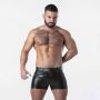 Deze mini short, vervaardigd uit het meest verfijnde perforated leatherette, biedt een unieke combinatie van stijl en functionaliteit. Het gebruik van contrastbinding accentueert de aantrekkelijke lijnen van het ontwerp, waardoor het een opvallende keuze is voor modebewuste individuen. Het populaire merk Locker Gear staat bekend om zijn gedurfde en trendy kleding, en deze short vormt daarop geen uitzondering.