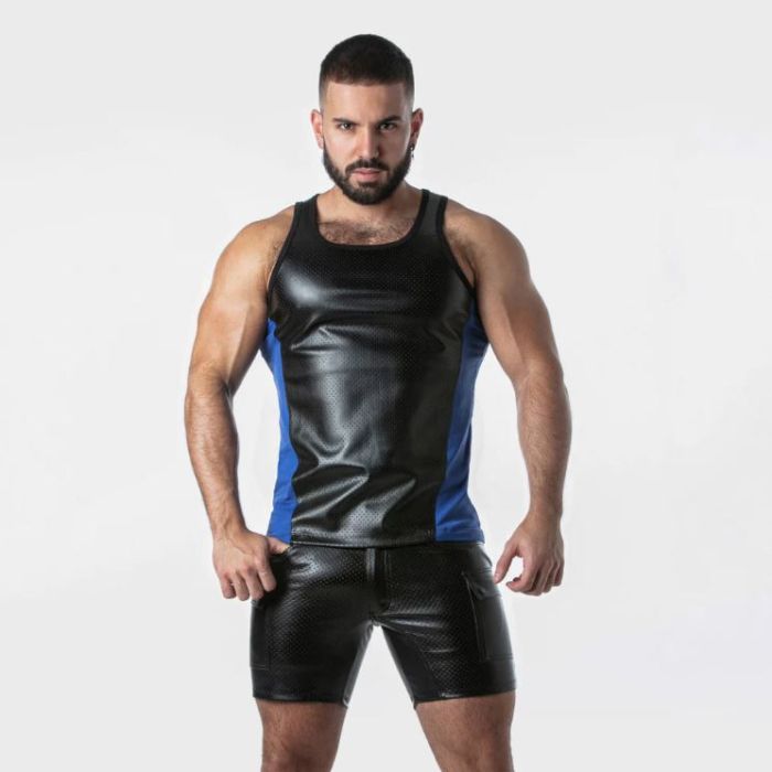 Deze tanktop, vervaardigd uit het meest verfijnde perforated leatherette, is een opvallend kledingstuk van het gerenommeerde gay merk Locker Gear. Het gebruik van hoogwaardig materiaal zorgt niet alleen voor een luxe uitstraling, maar ook voor een comfortabele pasvorm die de lichaamscontouren accentueert. De perforaties in de stof bieden een unieke esthetiek en zorgen voor een ademend effect, waardoor deze tanktop ideaal is voor zowel intieme gelegenheden als levendige feesten. De combinatie van stijl en functionaliteit maakt dit kledingstuk een must-have voor elke modebewuste man die zijn zelfvertrouwen wil uitstralen. Locker Gear staat bekend om zijn gedurfde en speelse ontwerpen die de LGBTQ+ gemeenschap vieren, en deze tanktop is daarop geen uitzondering. Het ontwerp is zorgvuldig samengesteld om een gevoel van vrijheid en expressie te bevorderen, waardoor het perfect is voor erotische feesten en andere sociale evenementen. De tanktop kan eenvoudig worden gecombineerd met verschillende outfits, van strakke jeans tot sportieve shorts, waardoor het een veelzijdig stuk is dat in elke garderobe thuishoort. De aandacht voor detail in de afwerking en het gebruik van duurzame materialen garandeert dat deze tanktop niet alleen stijlvol, maar ook langdurig is. Het dragen van deze tanktop van Locker Gear is meer dan alleen een modekeuze; het is een statement van zelfvertrouwen en trots. De tanktop is ontworpen om de drager te laten opvallen in een menigte, met een uitstraling die zowel gedurfd als verfijnd is. Of je nu een avondje uit gaat of deelneemt aan een speciaal evenement, deze tanktop zal zeker de aandacht trekken en gesprekken op gang brengen. Met zijn unieke combinatie van comfort, stijl en functionaliteit is deze tanktop een onmisbaar item voor iedereen die de wereld wil verkennen met flair en zelfverzekerdheid.