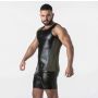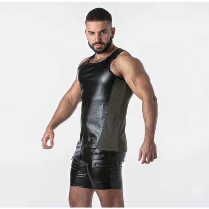 Deze tanktop, vervaardigd uit het meest verfijnde perforated leatherette, is een opvallend kledingstuk van het gerenommeerde gay merk Locker Gear. Het gebruik van hoogwaardig materiaal zorgt niet alleen voor een luxe uitstraling, maar ook voor een comfortabele pasvorm die de lichaamscontouren accentueert. De perforaties in de stof bieden een unieke esthetiek en zorgen voor een ademend effect, waardoor deze tanktop ideaal is voor zowel intieme gelegenheden als levendige feesten. De combinatie van stijl en functionaliteit maakt dit kledingstuk een must-have voor elke modebewuste man die zijn zelfvertrouwen wil uitstralen. Locker Gear staat bekend om zijn gedurfde en speelse ontwerpen die de LGBTQ+ gemeenschap vieren, en deze tanktop is daarop geen uitzondering. Het ontwerp is zorgvuldig samengesteld om een gevoel van vrijheid en expressie te bevorderen, waardoor het perfect is voor erotische feesten en andere sociale evenementen. De tanktop kan eenvoudig worden gecombineerd met verschillende outfits, van strakke jeans tot sportieve shorts, waardoor het een veelzijdig stuk is dat in elke garderobe thuishoort. De aandacht voor detail in de afwerking en het gebruik van duurzame materialen garandeert dat deze tanktop niet alleen stijlvol, maar ook langdurig is. Het dragen van deze tanktop van Locker Gear is meer dan alleen een modekeuze; het is een statement van zelfvertrouwen en trots. De tanktop is ontworpen om de drager te laten opvallen in een menigte, met een uitstraling die zowel gedurfd als verfijnd is. Of je nu een avondje uit gaat of deelneemt aan een speciaal evenement, deze tanktop zal zeker de aandacht trekken en gesprekken op gang brengen. Met zijn unieke combinatie van comfort, stijl en functionaliteit is deze tanktop een onmisbaar item voor iedereen die de wereld wil verkennen met flair en zelfverzekerdheid.