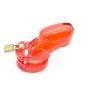 Deze opvallende peniskooi is speciaal gemaakt om de penis langdurig op te sluiten. Dankzij het open model is ventileren geen enkel probleem en maakt urineren gewoon mogelijk. De peniskooi wordt geleverd met diverse ringen, een metalen slotje en 5 kunststof slotjes. Gemaakt van degelijk polycarbonaat en na gebruik eenvoudig te reinigen.