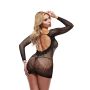 Voel je sexy en elegant in het Long Sleeve Kanten Mini Jurkje - Zwart van het merk Lapdance. Dit jurkje is gemaakt van zacht en soepel nylon met gaten structuur en is afgewerkt met kanten details voor een romantische uitstraling. Het jurkje laat met haar nauwsluitende en korte pasvorm jouw ronde vormen prachtig uitkomen.