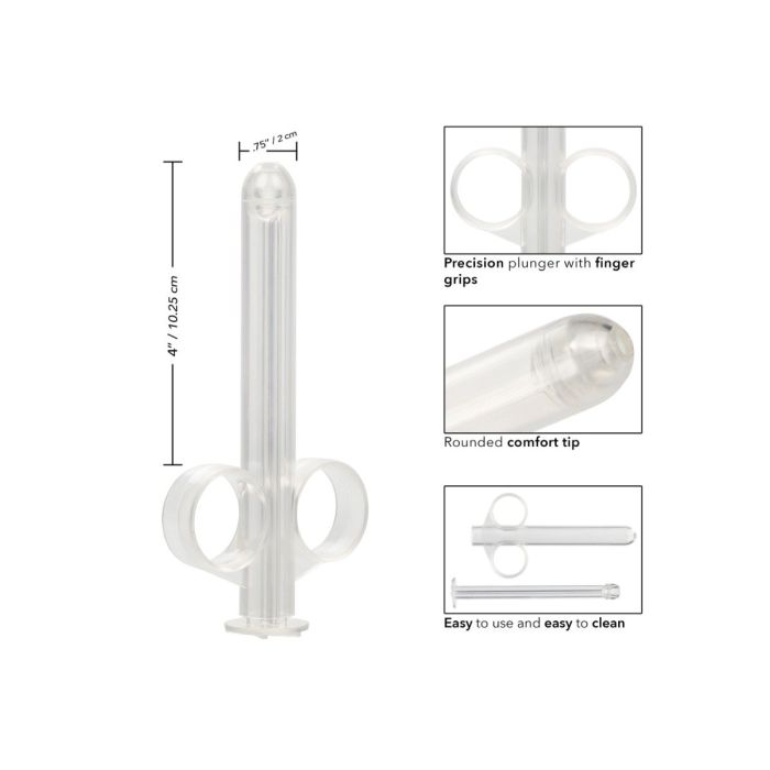 De Lube Tube XL van CalExotics is herbruikbaar, navulbaar en gemakkelijk schoon te maken. Het is een smeermiddeldoseerbuis waarmee je met uiterste precisie kunt smeren. De slanke buis is uitgerust met twee vingerlussen en een gebruiksvriendelijke plunjer. Vul de tube met de door jou gekozen vloeistof of glijmiddel en gebruik de dunne punt om elke keer de perfecte dosis op precies de juiste plek af te geven. Was de tube voor en na elk gebruik van binnen en van buiten met warm water en zeep en desinfecteer vervolgens met een toy cleaner.