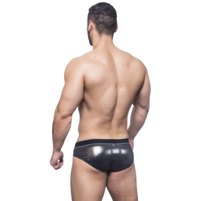De Andrew Christian - Massive Gladiator Brief - Zilver is een opwindende slip voor een opwindende man. Deze slip is gemaakt van soepele metallic zilverkleurige stof met een nauwsluitende pasvorm. De tailleband zit laag om de heupen en heeft een afslankend effect. Op de tailleband staat een speelse print en het woord MASSIVE recht boven jouw jonge heer om aan te duiden dat jij heel wat in huis hebt. Het kruis van de limited edition Massive Gladiator Brief is anatomisch correct gevormd voor een hoogwaardig draagcomfort. Deze slip zit daardoor als gegoten en je zult nooit hoeven herpositioneren.