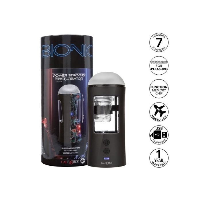 De Masturbator Bionic Stroking van CalExotics is een op zichzelf staande stotende masturbator gemaakt om de zintuigen te omhullen met een volledig aanpasbare streelervaring. Een ultradichte kamer met textuur wikkelt zich strak om je heen, terwijl 7 functies van intense stuwkracht zorgen voor een heerlijk hoogtepunt. Een ultradichte, ultrazachte, levensechte sleeve kan worden verwijderd voor reiniging of onafhankelijk van de stroker worden gebruikt. Door de afneembare dop is de masturbator perfect om mee te nemen op reis. Geniet van meer dan 60 minuten streelplezier op lage snelheid en laad de masturbator op in slechts 5 uur met de meegeleverde USB-kabel.