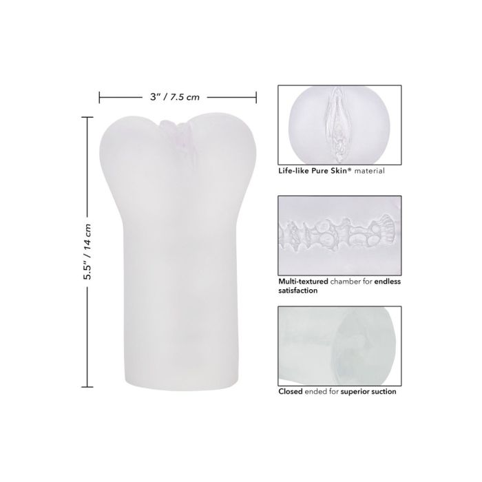 Een heerlijke zachte masturbator om elke dag van te genieten. Dat kan met de Masturbator Boundless Vulva - Clear van Calexotics. Deze masturbator is gemaakt van zacht TPE materiaal en heeft een levensechte vagina ingang. De masturbator is heerlijk zacht en rekbaar. Daarnaast voelt hij aan als een strak poesje voor heerlijke solo seks. Het gesloten einde zorgt voor superieure zuigkracht en de Masturbator Boundless Vulva - Clear is hygiënisch en onderhoudsvrij. Na gebruik enkel afspoelen onder de kraan met een milde zeep en een toycleaner.