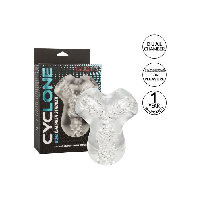 Het open ontwerp maakt dubbel gebruik en eenvoudige reiniging mogelijk. Verwen jezelf met de Cyclone voor meerlaagse stimulatie en breng je plezier naar nieuwe hoogten. Of het nu gaat om een zachte draaikolk of intense sensatie, deze masturbator bevredigt jouw verlangens.