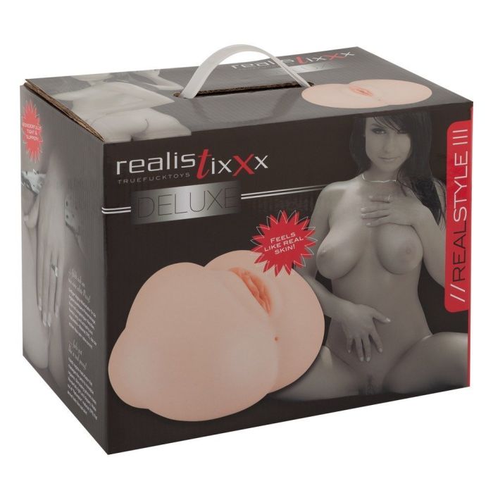 Deze realistische Masturbator Real Style III van Realistixxx heeft prachtige billen, vagina-en anus opening. De binnenkant heeft opwindende groeven en nopjes. Zo geniet jij van een heerlijke massage. Het huidachtige Real-materiaal ziet eruit als echte huid en voelt net zo zacht en zijdeachtig aan. Met een gewicht van meer dan 4 kg ligt de masturbator lekker stevig en slipvrij op elk glad oppervlak. Maak Real Style lll na gebruik schoon door hem eenvoudig af te spelen met water en schoon te maken met een toycleaner.