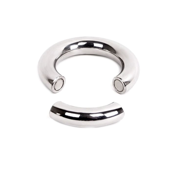 Deze ballstretcher van Kiotos is gemaakt van roestvrij staal en is daardoor zeer sterk en lekker zwaar. Deze ballstretcher geeft door het gewicht een trekkende sensatie en kan ook als cockring gebruikt worden. De metalen ring is op twee plekken los te maken, door de twee delen van elkaar los te trekken. Deze twee plekken zijn namelijk voorzien van sterke magneten die ervoor zorgen dat de ballstretcher goed blijft zitten. De Metalen magnetische Ballstretcher is gemakkelijk te reinigen met toycleaner.