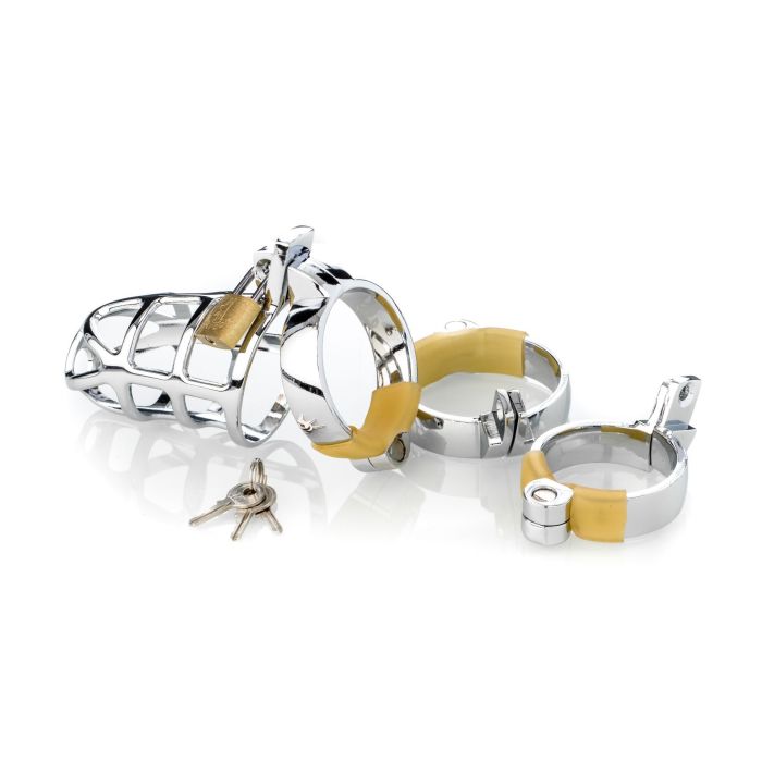 Deze Metalen Peniskooi van Zenn heeft een diameter 4.1 cm. Door de drie verschillende maten cockringen is hij perfect voor elke man. De binnendiameters van de cockringen zijn 40, 45 en 50 mm. Het opsluiten van zijn penis is nog nooit zo eenvoudig geweest.
