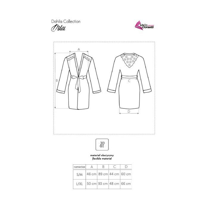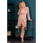 In de schouders zijn delen micro mesh ingezet en over de schouderbladen is sierlijk bloemen kant aangebracht. Bij de kamerjas zit een strik ceintuur.