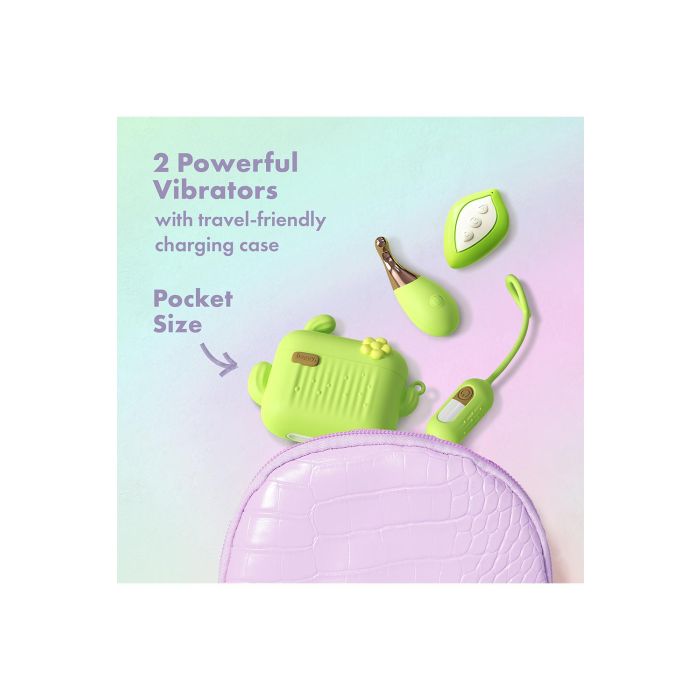 De Mini Vibrator set Blooming Bliss - Groen is een schattig verzamelobject dat bestaat uit 2 mini-vibes verpakt in een handige USB-C-oplaaddoos, perfect voor onderweg.