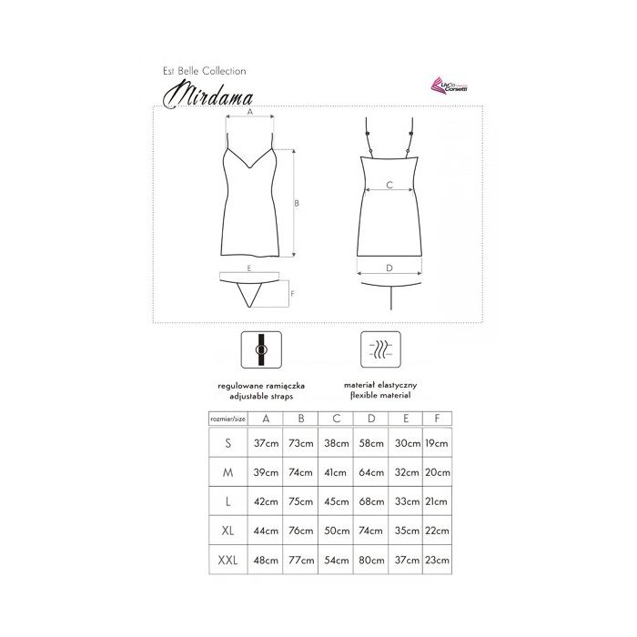 Voor een klassieke chemise kies je de Mirdama Chemise - Pearl van Livco Corsetti. De satijnachtige stof valt soepeltjes rond het lichaam en is glad en glanzend voor een sensuele aanraking. De chemise heeft een verleidelijke V-hals en smalle verstelbare schouderbandjes die op de rug zijn gekruist. De chemise wordt geleverd met een bijpassende string.