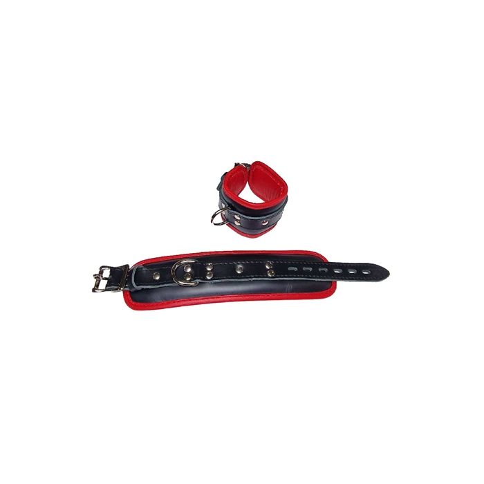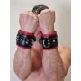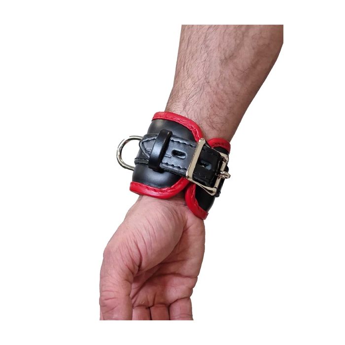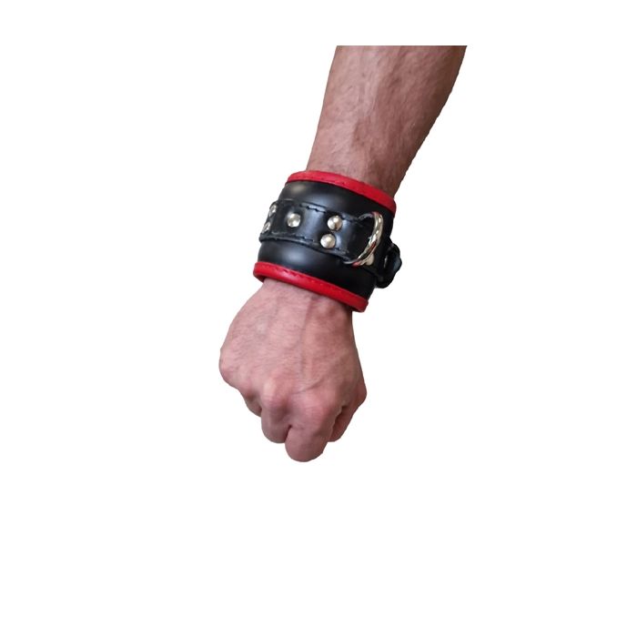 Mister B Essential lederen afsluitbare Polsboeien Zwart Rood