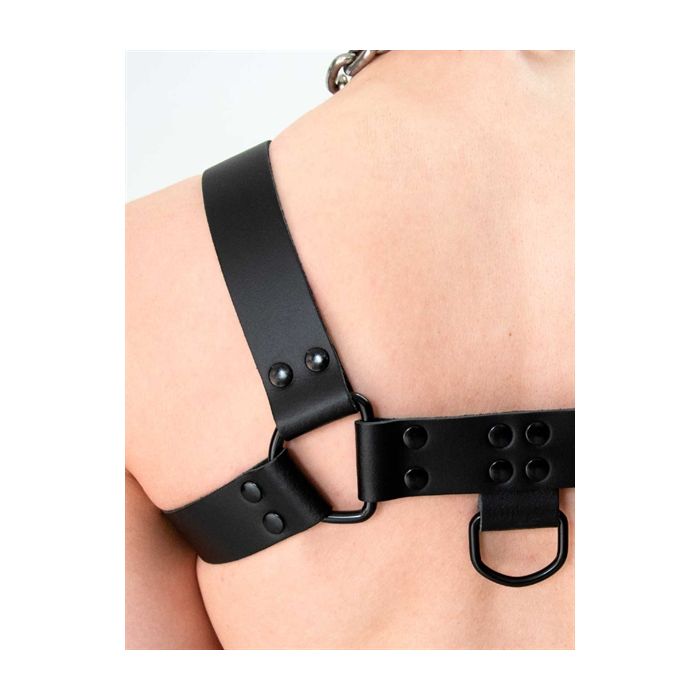 Het Mister B Leren Borstharnas is ontworpen met jouw comfort en stijl in gedachten. Met een verstelbare pasvorm die beschikbaar is in maten van S tot XL, kun je het harnas perfect afstemmen op jouw lichaam. Het stevige, maar flexibele zadelleer vormt zich na verloop van tijd naar jouw unieke lichaamsvorm, waardoor je een pasvorm krijgt die alleen maar beter wordt. Dit harnas is niet alleen een statement van kracht, maar ook een uitnodiging om jezelf te zijn en te genieten van elke ervaring die je aangaat.