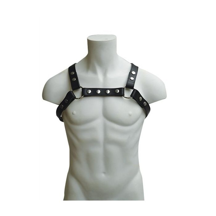 Dit schitterende harnas is het perfecte item voor elke party. Maar ook in de slaapkamer is dit harnas perfect te dragen. Combineer het met een leren broek of een geile gescheurde jeans. Het leer is heerlijk soepel en zal met het dragen steeds fijner gaan zitten omdat hij helemaal naar het lichaam zal vormen. De voorkant is voorzien van 2 d-ringen waar het harnas met elkaar verbonden wordt en het leer is voorzien van studs voor een stoere uitstraling. Op de rug heeft het harnas een kruislings model waar je rug mooi in uit zal komen.