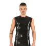 Gemaakt van 0,4 mm dik rubber, biedt dit mouwloze T-shirt een strakke pasvorm die de beste delen van je lichaam accentueert. De gekleurde bies rond de hals en armgaten voegt een speelse touch toe, waardoor je er niet alleen goed uitziet, maar je ook zelfverzekerd voelt.