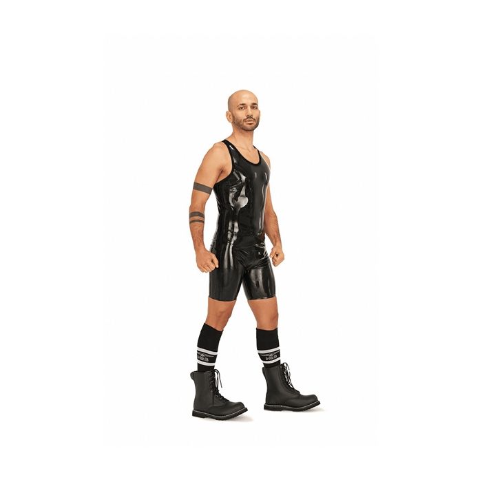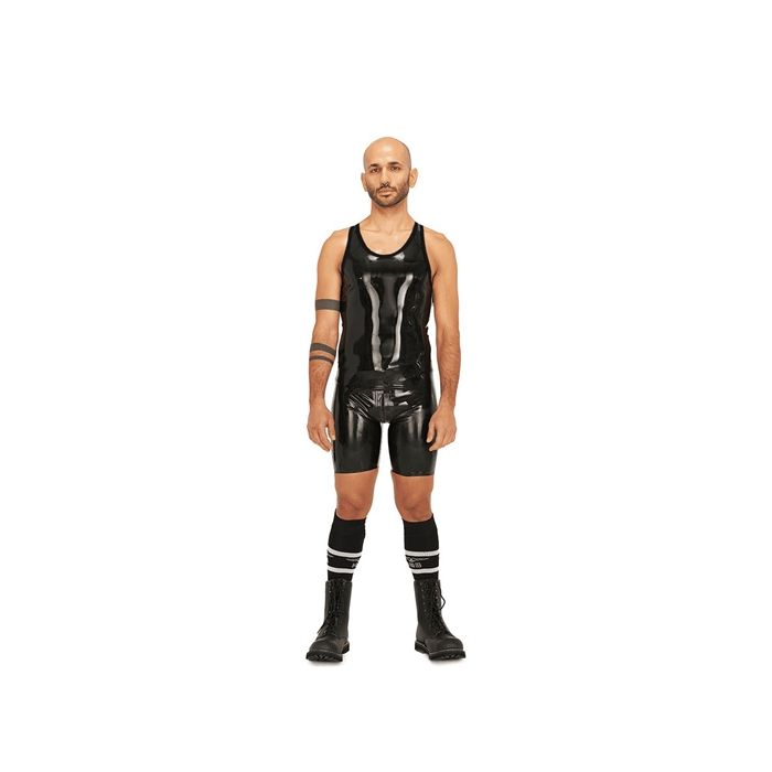 Het Mister B Rubber Muscle Shirt - Zwart is perfect voor degenen die graag hun lichaam tonen na het sporten. Dit strakke shirt is gemaakt van 0,4 mm dik rubber en is ideaal voor degenen die van een glanzende en strakke look houden. Het shirt heeft een athletische uitstraling dankzij de zwarte rubberen afwerking rond de schouders en armen, evenals de zwarte strepen aan de zijkant. Dit geeft het shirt een stoere en sportieve uitstraling die perfect samengaat met (rubberen) sportshorts of trainers. Het shirt is ontworpen voor kinksters die graag in iets opvallends en straks willen sporten. Het Mister B Rubber Muscle Shirt - Zwart is niet alleen functioneel, maar ook stijlvol. Het strakke ontwerp en de zwarte kleur maken het een veelzijdig kledingstuk dat gemakkelijk te combineren is met andere sportkleding. Het rubberen materiaal van 0,4 mm dikte zorgt voor een comfortabele pasvorm en biedt tegelijkertijd een stoere uitstraling. Of je nu gaat sporten in de sportschool of een kinky feestje bijwoont, dit shirt zal zeker de aandacht trekken. Het is gemaakt voor degenen die niet bang zijn om hun lichaam te laten zien en die houden van een strakke en glanzende look. Met het Mister B Rubber Muscle Shirt - Zwart ben je klaar om te sporten en te pronken met je lichaam.