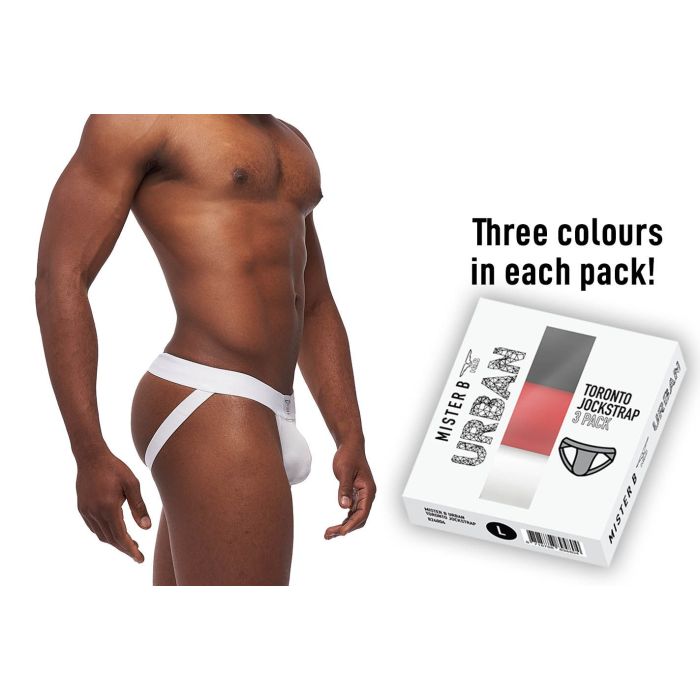 Verras je partner keer op keer met deze spannende 3-pack van het erotische merk Mister B. Deze 3-pack bestaat uit 3 spannende jockstraps waarmee jij zeker weten de show zal stelen! De jockstrap creeërt een super sexy look en dankzij de rekbare bandjes zullen je billen in een hogere positie worden getilt. De kenmerkende push-up pouch zorgt aan de voorkant voor de nodige spanning om je avond nóg verleidelijker te laten verlopen. De jockstraps zijn gemaakt van hoogwaardige materialen. De 3-packs zijn nu verkrijgbaar in vijf maten van S tot XXL, zodat iedereen elke dag van het genot van Mister B Urban kan genieten!
