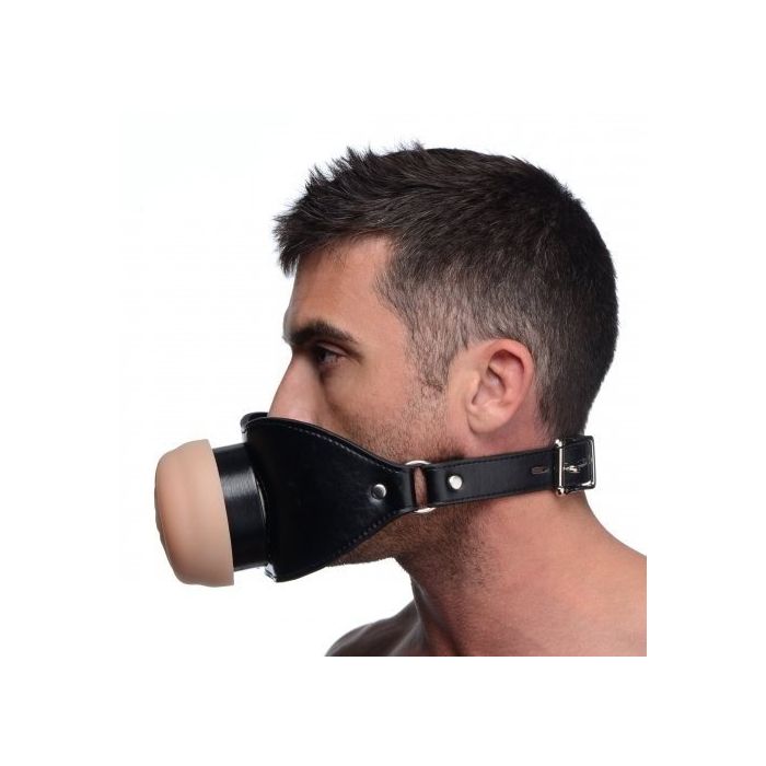 Laat je sub zijn of haar mond openen en schuif de achterkant van deze speciale gag in zijn of haar mond. De lippen en tanden komen om het inbrengbare gedeelte heen zodat de mond van je sub wagenwijd open staat. De voorkant heeft een masturbator look in de vorm van een mooi gevormd poesje. De lippen staan al een beetje open zodat jij je penis zo naar binnen kan laten glijden. Het gedeelte wat over de mond heen komt is gemaakt van stevig kunstleer en is achter in de nek te sluiten met een handig sluitsysteem. Jij kan er zelfs nog een extra hangslotje op zetten wanneer jouw sub dit nodig heeft. Druk, wanneer de gag strak en stevig om je sub heen zit zo je penis de vagina masturbator in en geniet van van de mond gag met pussy masturbator samen met je lover. De mastusrbator is te verwijderen zodat jij deze snel en hygiënisch kan reinigen voor de volgende keer. Was hem onder de warme kraan met een milde zeep.