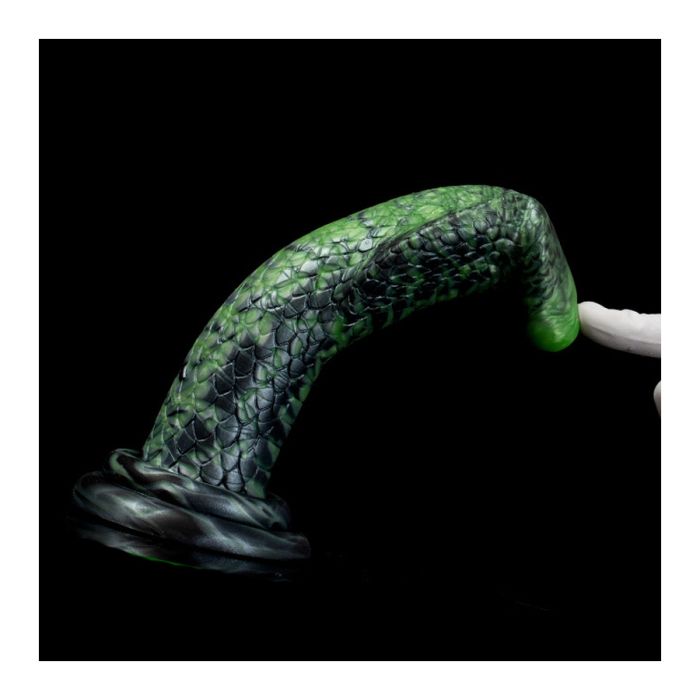 De Monster Dildo Gode Kagruk heeft een unieke slangvorm, met een textuur van schubben en ribbels die zorgt voor een spannende en intense ervaring. Met een totale lengte van 23 cm en een inbrengbare lengte van 21 cm is deze dildo perfect voor avontuurlijke momenten. De maximale diameter van 6,5 cm biedt een uitdagende sensatie, terwijl de stevige zuignapbasis je de vrijheid geeft om je handen vrij te houden. Gemaakt van hoogwaardig siliconen is deze dildo niet alleen veilig in gebruik, maar ook eenvoudig schoon te maken. Voeg een vleugje avontuur toe aan je collectie!