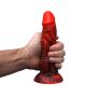 De Monstar Cox InfernoCock is een adembenemende dildo die je fantasieën naar een nieuw niveau tilt! Dit meesterwerk, geïnspireerd door de kracht en mystiek van draken, biedt een unieke combinatie van opwindende ribbels en gedetailleerde texturen die elke aanraking onvergetelijk maken. De vurige rood-zwarte lavakleuren zorgen niet alleen voor een visueel spektakel, maar ook voor een sensatie die je niet snel zult vergeten. Gemaakt van premium, lichaamsveilige siliconen, voelt de InfernoCock zijdezacht aan, terwijl de stevige kern je de ondersteuning biedt die je nodig hebt voor avontuurlijke spelletjes. Met een totale lengte van 21 cm en een inbrengbare lengte van 18,5 cm, is deze dildo perfect voor zowel beginners als ervaren gebruikers. De brede, stabiele basis zorgt voor veilig, handsfree gebruik, zodat je je volledig kunt overgeven aan de intense sensaties. Maak je klaar om je passies in brand te steken!