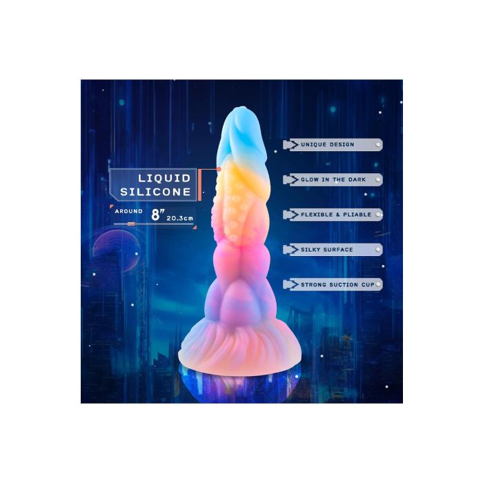 Maak je klaar voor een spannende ervaring met de Monster Dildo van NMC! Deze unieke dildo is niet alleen een lust voor het oog met zijn diverse kleuren, maar hij heeft ook een indrukwekkende lengte van 20,3 cm en een diameter van 4,3 cm, waardoor hij perfect is voor diegenen die op zoek zijn naar iets bijzonders. Het flexibele ontwerp zorgt ervoor dat je hem gemakkelijk kunt gebruiken in verschillende posities, terwijl de sterke zuignap je de vrijheid geeft om hem op vrijwel elke gladde ondergrond te bevestigen. En het beste van alles? Hij gloeit in het donker, wat zorgt voor een extra speelse en mysterieuze sfeer tijdens je intieme momenten. Of je nu alleen speelt of samen met een partner, deze monster dildo belooft een onvergetelijke ervaring!