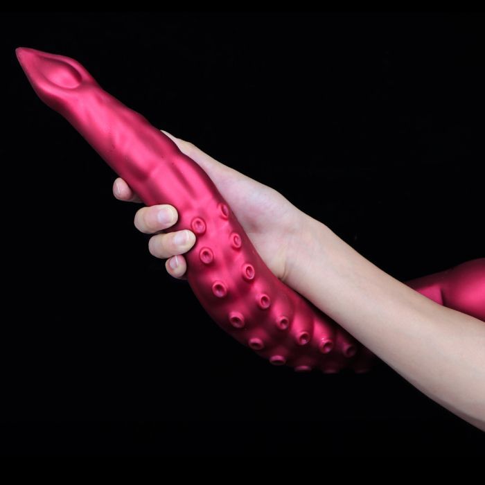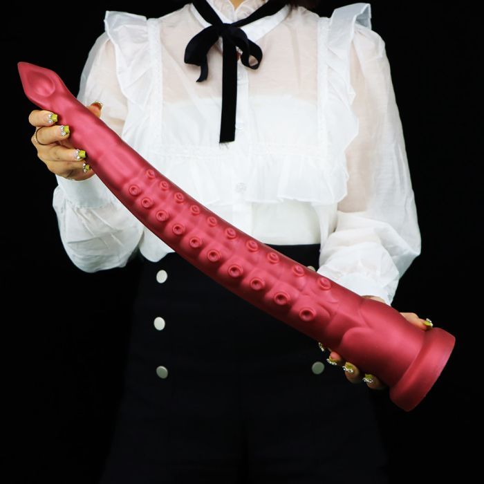 Deze bijzondere dildo is alleen weggelegd als je reeds gevorderd bent wat hij heeft namelijk een lengte van maar liefst 55 cm! Uitgevoerd in de vorm van een tentakel met een taps toelopende diameter. De dildo is gemaakt van hoogwaardig siliconen en tevens voorzien van een sterke zuignap waarmee je de dildo eenvoudig vastzet op een vlakke ondergrond. De monster dildo is buigzaam en voelt zijdezacht aan op de huid. Let op: uitsluitend compatibel met een glijmiddel op waterbasis. Na gebruik schoon te maken met water en een milde zeep of een speciale toycleaner uit ons assortiment.