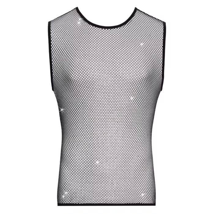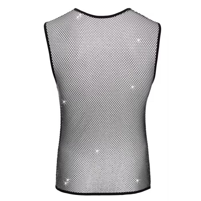 Dit shirt is niet alleen een kledingstuk, maar een echte eyecatcher dankzij de spannende zwarte transparantie die je look naar een hoger niveau tilt. Overal bedekt met fonkelende strassteentjes, vangt het licht op een manier die je laat stralen, of je nu een avondje uit gaat of een speciale gelegenheid viert. De combinatie van het luchtige mesh materiaal en de glinsterende details zorgt ervoor dat je er niet alleen fantastisch uitziet, maar je ook zelfverzekerd voelt.