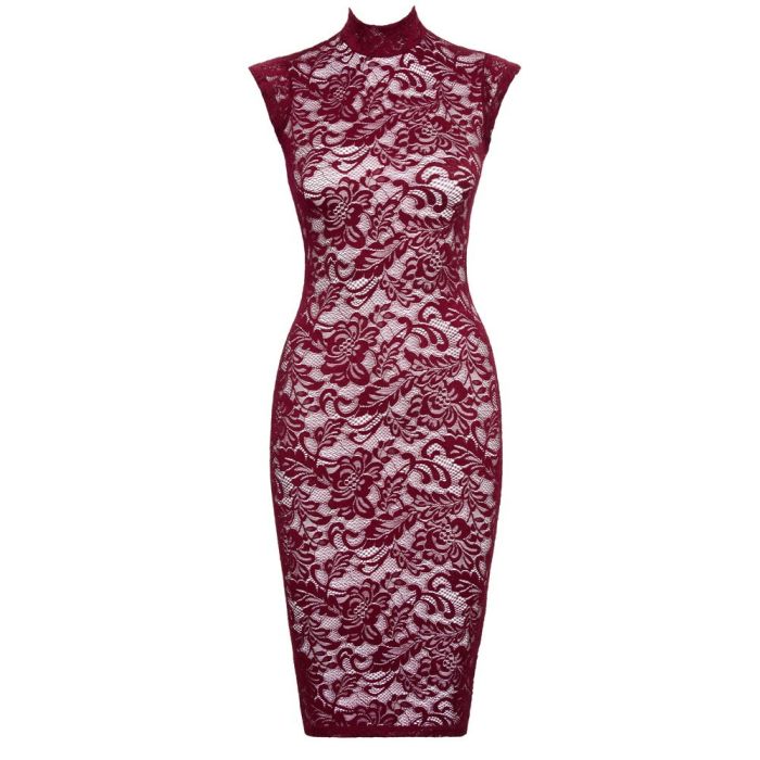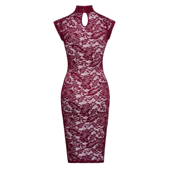 Maak een statement met onze mouwloze knielange kanten jurk in een betoverende bordeauxrode kleur! Deze jurk van Cottelli LINGERIE is perfect voor elke gelegenheid waar je wilt stralen. Het fijne, soepele sierkant omarmt je figuur op een elegante manier, terwijl de getailleerde snit en het kleine opstaande kraagje een verfijnde touch geven. De elastische stof zorgt voor een ongeëvenaard draagcomfort, zodat je je de hele dag zelfverzekerd en mooi voelt. Of je nu een avondje uit gaat of een speciale gelegenheid viert, deze jurk is de ideale keuze om je vrouwelijke charme te accentueren. Voeg deze must-have toe aan je garderobe en laat je betoveren door de luxe uitstraling!