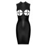Maak een statement met deze mouwloze strakke jurk van Cottelli PARTY, perfect voor elke gelegenheid waar je wilt opvallen! De geraffineerde zwarte matte look geeft je een chique uitstraling, terwijl het nauwsluitende model met opstaande kraag en knielengte je figuur prachtig accentueert. De twee elastische openingen voor de afzonderlijke borsten zijn niet alleen een gedurfde blikvanger, maar voegen ook een speelse twist toe aan je outfit. Met verstelbare borstbandjes en geïntegreerde zilverkleurige tepelbedekkers krijg je een sexy finishing touch die zeker de aandacht zal trekken. Dankzij de lange ritssluiting aan de achterkant is het aan- en uittrekken van deze jurk een fluitje van een cent, terwijl het zachte en elastische materiaal zorgt voor een hoog draagcomfort. Wees de ster van de avond en laat je zelfvertrouwen stralen in deze onweerstaanbare jurk!