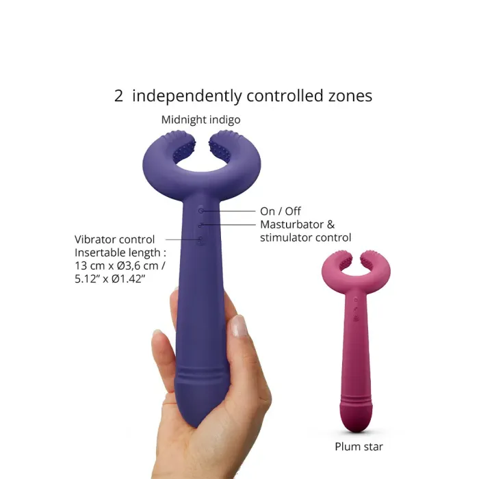 De Love to Love - Please Me - Multi Vibrator in indigo is een innovatief en veelzijdig seksspeeltje dat speciaal is ontworpen om een scala aan genotsmogelijkheden te bieden. Deze vibrator is uitgerust met een unieke ring die kan functioneren als masturbator, terwijl de schacht krachtige vibraties levert die gericht zijn op de meest gevoelige plekken van de vrouw. Met drie krachtige motoren die in verschillende delen van de vibrator zijn geïntegreerd, kunnen gebruikers genieten van gerichte trillingen die de ervaring intensiveren, ongeacht de gekozen modus. De ring en de schacht beschikken beide over maar liefst 8 vibratiestanden, waardoor de gebruiker de vrijheid heeft om de intensiteit en het ritme aan te passen aan haar persoonlijke voorkeuren. Bovendien zorgt het getextureerde ontwerp van de Please Me vibrator voor een extra dimensie aan het genot, waardoor elke aanraking en elke vibratie een unieke sensatie biedt. Dit product is ideaal voor zowel solo gebruik als voor koppels die hun intieme momenten willen verrijken.