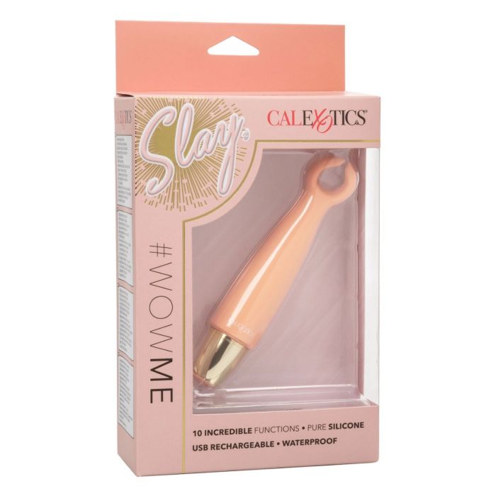 De Multifunctionele vibrator Slay Wow Me van CalExotics is geweldig om je clitoris te stimuleren, tepels, eikel of de ballen. Je kunt de 10 vibratiestanden bedienen door de easy-touch bedieningsknop. Geen gedoe meer met batterijen want de vibrator Slay Wow Me is volledig oplaadbaar. Je laad de vibrator eenvoudig op in 90 minuten en daarna kun je 70 minuten genieten van heerlijke vibraties.