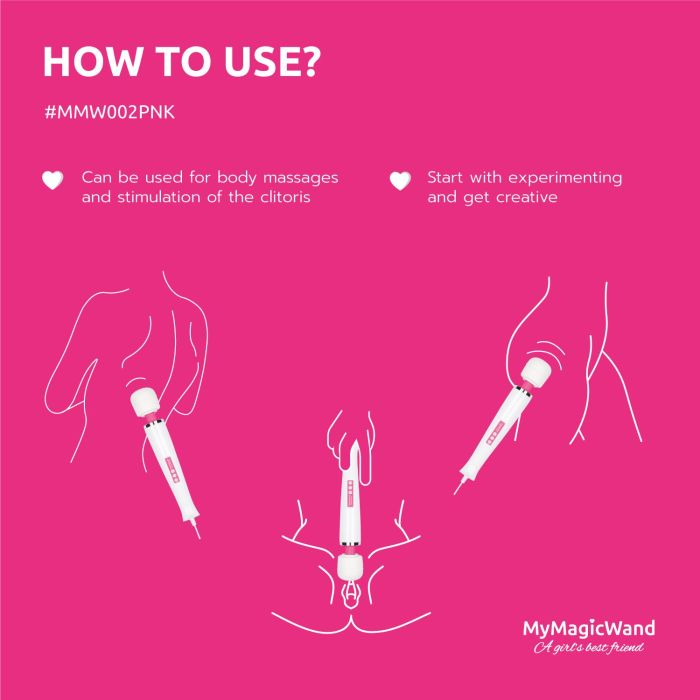 De top van de MyMagicWand is voorzien van een zachte hoes met padding, waardoor hij heerlijk aanvoelt op de huid. Voor een nog aangenamere ervaring raden we aan om een massagegel of glijmiddel op waterbasis te gebruiken. Met slechts enkele druppels glijdt de kop moeiteloos over je huid, en voor extra ontspanning kun je zelfs een verwarmend glijmiddel proberen.