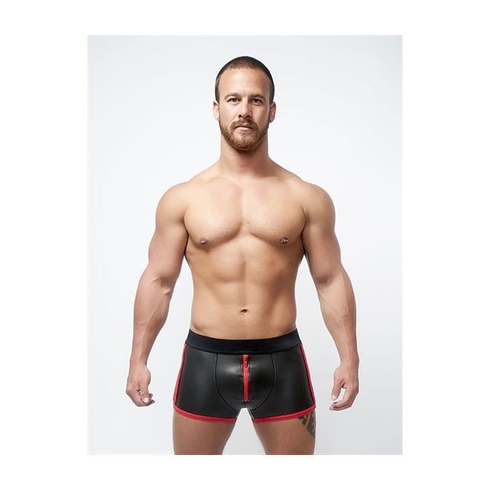 Laat je zien in deze schitterende short van mister B. De short is gemaakt van dik en rekbaar neopreen materiaal welke heerlijk rond je billen zal zitten. Tevens zal het model je billen perfect uit laten komen. Aan de zijkanten is de short versierd met mesh materiaal en de pouch is voorzien van een rits. De brede band rond de heupen is goed rekbaar en zal lekker strak rond de heupen zitten. Deze short is perfect voor in de slaapkamer of op een feestje.