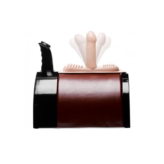 De neukmachine is ook ontworpen met een geribbelde vlak voor optimale clitorale stimulatie, waardoor je orgasmes sneller en heftiger dan ooit tevoren zult ervaren. Of je nu alleen speelt of samen met je partner, deze neukmachine belooft een onvergetelijke ervaring vol genot. The Saddle Deluxe neukmachine onderscheidt zich van andere neukmachines door zijn unieke vorm. Hij ziet er namelijk uit als een echt cowboyzadel. De afneembare afstandsbediening is te plaatsen in het zadel waarna hij kan functioneren als een handvat. De realistische dildo is voorzien van extra geribbelde vlakken voor clitoris stimulatie.