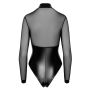 Deze prachtige zwarte body met lange mouwen van Noir is een absolute must-have voor elke vrouw die op zoek is naar een combinatie van elegantie en sensualiteit. De body is gemaakt van een verfijnde mix van transparant, fijn powernet aan de bovenkant en een zachte matte look aan de onderkant. Dit zorgt niet alleen voor een spannend contrast, maar ook voor een comfortabele pasvorm die perfect aansluit op het lichaam. De body heeft een opstaande kraag en een ritssluiting die vanaf de kraag doorloopt tot over de billen, waardoor je gemakkelijk in en uit de body kunt stappen. De twee grote ringen aan de voorkant op borsthoogte zijn echte eyecatchers en simuleren spannende tepelpiercings. Dit geeft de body een extra speels en uitdagend tintje. Kortom, deze body van Noir is ideaal voor een avond vol passie en verleiding!
