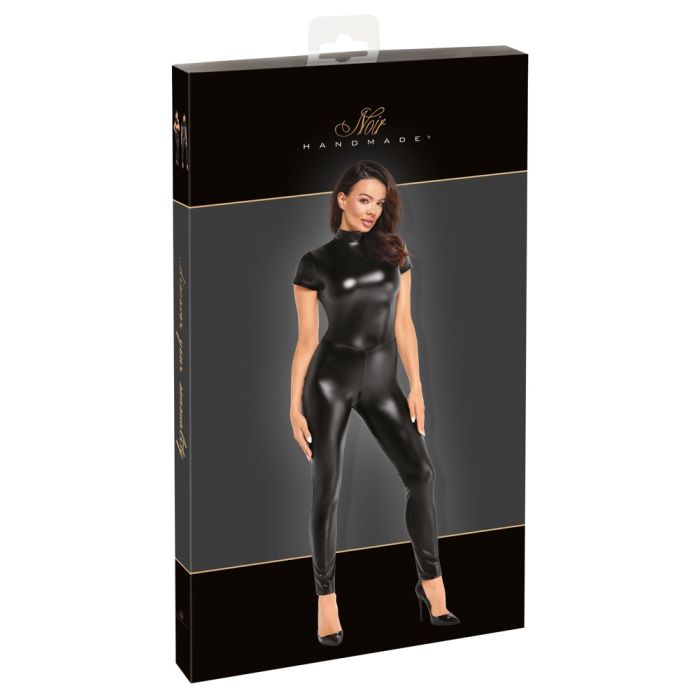 Deze benadrukkende jumpsuit van Noir is perfect voor een sexy en comfortabele look. Het zit als een tweede huid dankzij de zachte en elastische stof. Het aansluitende model heeft een opstaande kraag, korte mouwen en lange pijpen. Met een haaksluiting bij de nek en een grote halslijn met variabele vetersluiting, is deze overall zowel praktisch als verleidelijk. De 2-wegrits in het kruis maakt het gemakkelijk om aan en uit te trekken. Een must-have voor een spannende avond!