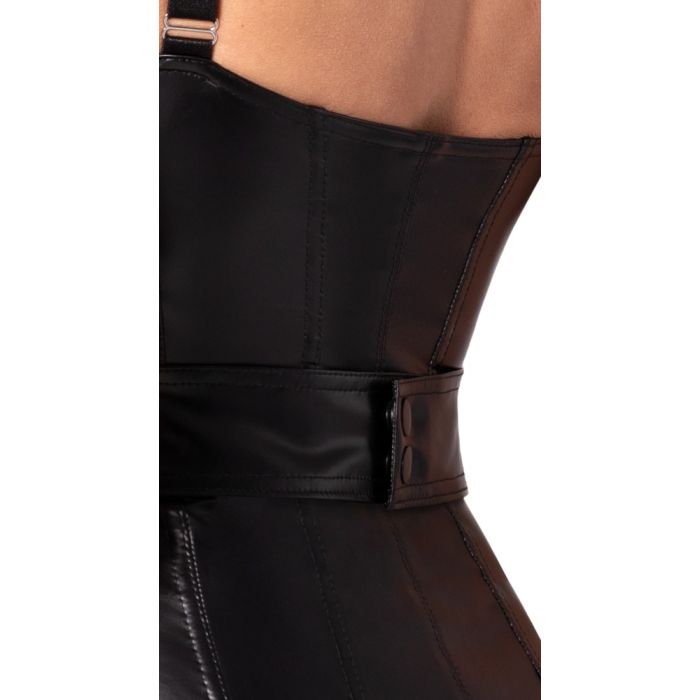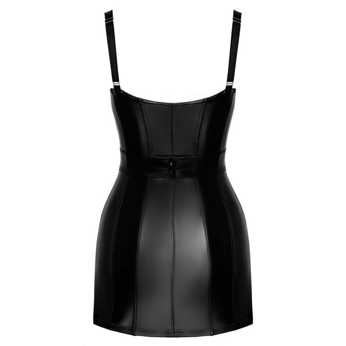 Deze extra korte, getailleerde jurk van Noir is een absolute must-have voor elke vrouw die op zoek is naar een elegante en sexy outfit. De jurk is gemaakt van een zwarte, elegante power wetlook stof die ervoor zorgt dat je alle aandacht zult trekken. De langsnaden die doorlopen naar het silhouet zorgen voor een flatterende pasvorm die je rondingen op de juiste manier accetueert. De jurk is zacht en elastisch, waardoor hij perfect aansluit op je lichaam en zorgt voor een hoog draagcomfort. De doorlopende ritssluiting aan de voorkant voegt een edgy touch toe aan het ontwerp, terwijl de afneembare riem met sierring aan de voorkant en drukknoopsluiting aan de achterkant zorgen voor een speelse twist. De brede bandjes van de jurk zijn naar wens verstelbaar, zodat je de perfecte pasvorm kunt creëren. Met deze jurk ben je klaar om te stralen op elke gelegenheid!