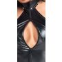 Deze benadrukkende jumpsuit van Noir is perfect voor een avondje uit. De zwarte powerwet look zorgt ervoor dat de jumpsuit als een tweede huid zit, terwijl het zachte en elastische materiaal zorgt voor maximaal comfort. Het nauwsluitende, off-the-shoulder model is voorzien van fonkelende strasssteentjes op de opstaande kraag en aan de zomen van de lange, smalle pijpen. De jumpsuit is voorzien van korte ritsen om het aan- en uitkleden gemakkelijk te maken. Daarnaast heeft de jumpsuit een doorlopende 2-wegrits die van de kraag via het kruis tot over de billen loopt, wat zowel praktisch als sexy is. Met deze jumpsuit steel je zeker de show en voel je je comfortabel en zelfverzekerd tegelijkertijd.