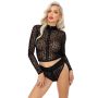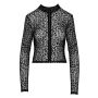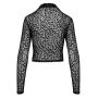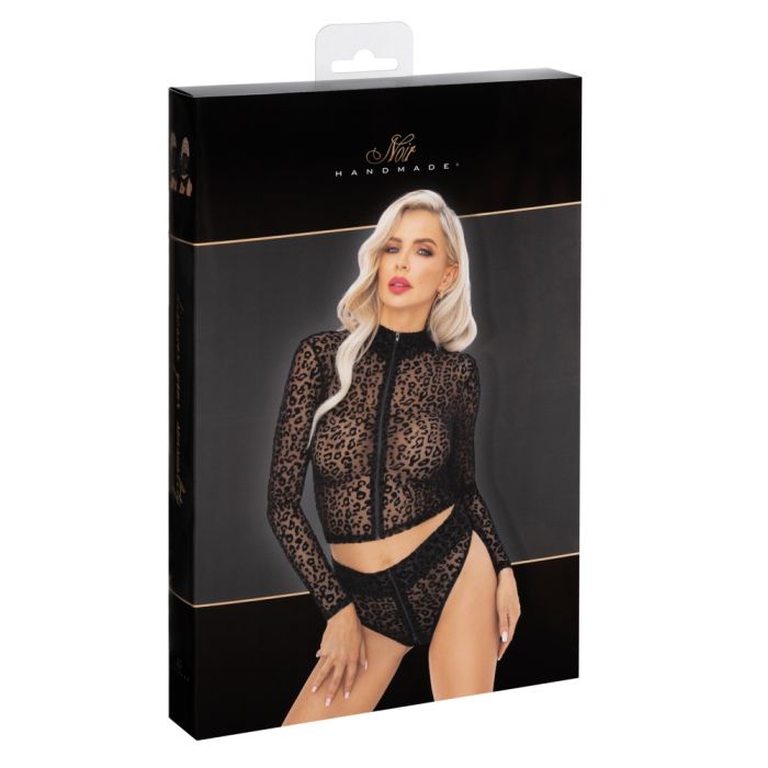 Deze korte, soepele top van Noir is perfect voor een avondje uit of een speciale gelegenheid. De top heeft lange mouwen en een klein opstaand kraagje, wat zorgt voor een chique uitstraling. De ritssluiting over de volledige lengte aan de voorkant geeft de top een stoere touch en maakt het gemakkelijk om aan en uit te trekken. Gemaakt van fijn gaas met een fluwelen kuddeprint in luipaardlook, is deze top een echte eyecatcher. Het materiaal is zacht en elastisch, waardoor het comfortabel is om te dragen en mooi aansluit op het lichaam. Combineer deze top met een mooie broek of rok en je bent klaar voor elke gelegenheid. Met deze top van Noir steel je zeker de show!