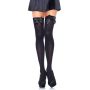 Deze donkere kousen van Leg Avenue zullen je benen langer laten lijken. Deze spannende kousen zijn gemaakt van dik nylon met een hoge stretch kwaliteit. De hold up randen bovenaan zijn breed en versierd met satijnen strikken aan de voorkant. Deze kousen maken ieder lingerie setje nog specialer en iedere outfit spectaculairder.
